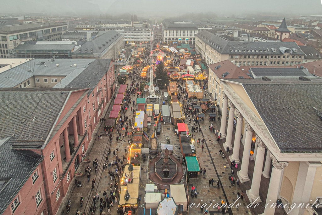 Christkindlesmarkt en la Marktplatz, donde Papá Noel sobrevuela Karlsruhe en navidad