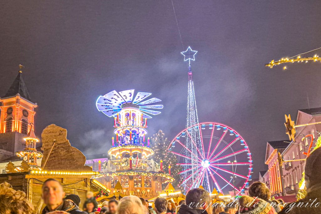 El mercado tradicional de la plaza central de Karlsruhe destaca por sus bonitos puestos, el bar con forma de nacimiento piramidal y la gran noria que hay en uno de sus extremos. Además, aquí puedes pasear entre puestos de artesanía, comer y entrar en calor con una bebida caliente.