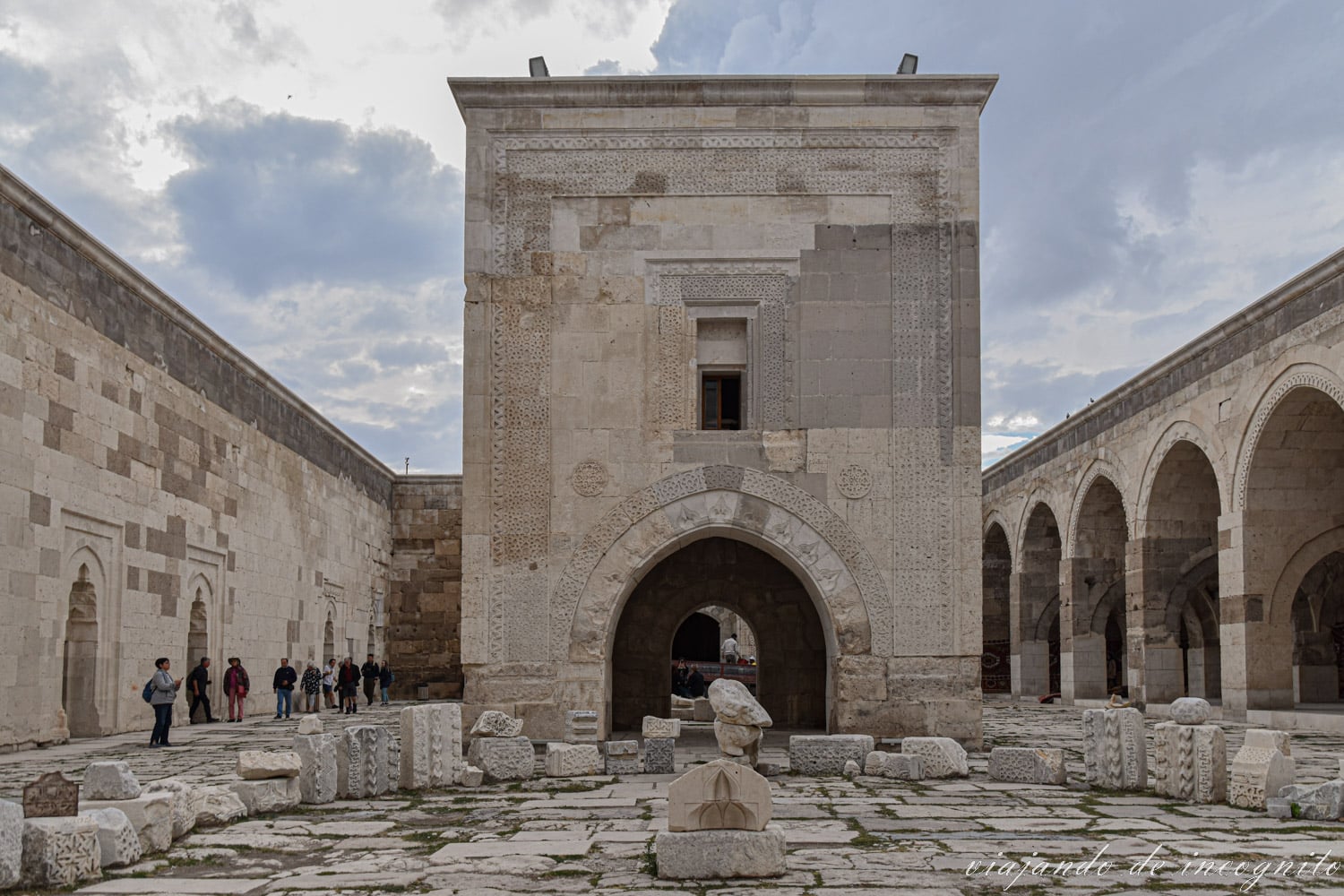 Así, aparcamos de manera gratuita en una de las calles paralelas al edificio y enseguida atravesamos la puerta del caravanserai, que está bellamente tallada. Pasear por su interior y ver cómo estaba organizado, aunque no hubiese mucha información, nos permitió imaginarnos cómo se ordenaban las caravanas en el pasado.