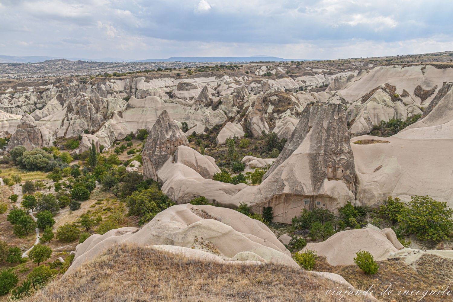 Nosotros habíamos decidido que este valle lo veríamos sólo desde el mirador, ya que nuestro tiempo era limitado, pero cada vez que llegábamos a uno, que son muchos, nos entraban ganas de bajar. Y es que en Capadocia puedes pasarte días explorando.
