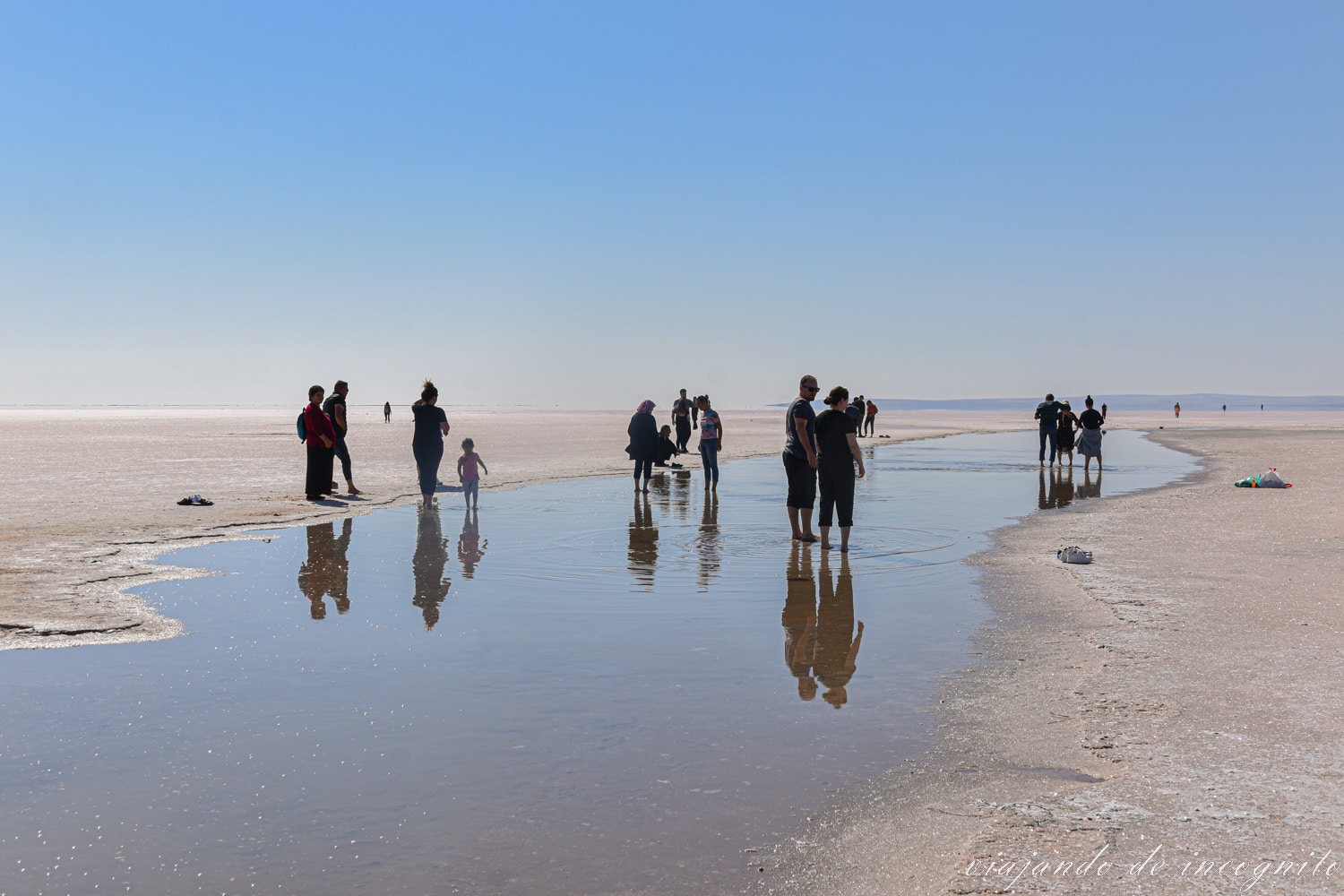 Y nuestra última parada fue el lago Tuz, que está a unas dos horas en coche al norte de Göreme y es el segundo lago salado más grande de Turquía. Así, destaca por su alta concentración de sal y por el precioso color rosa que puede llegar a tener.
