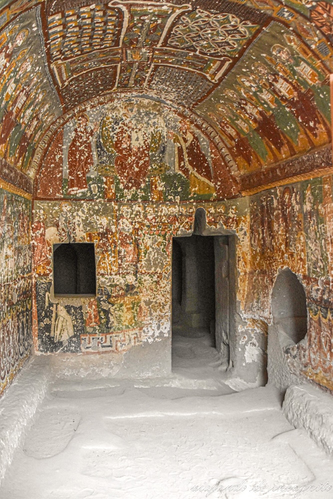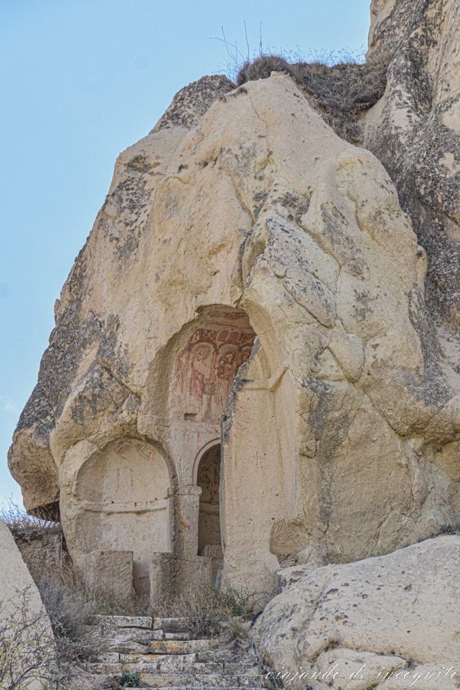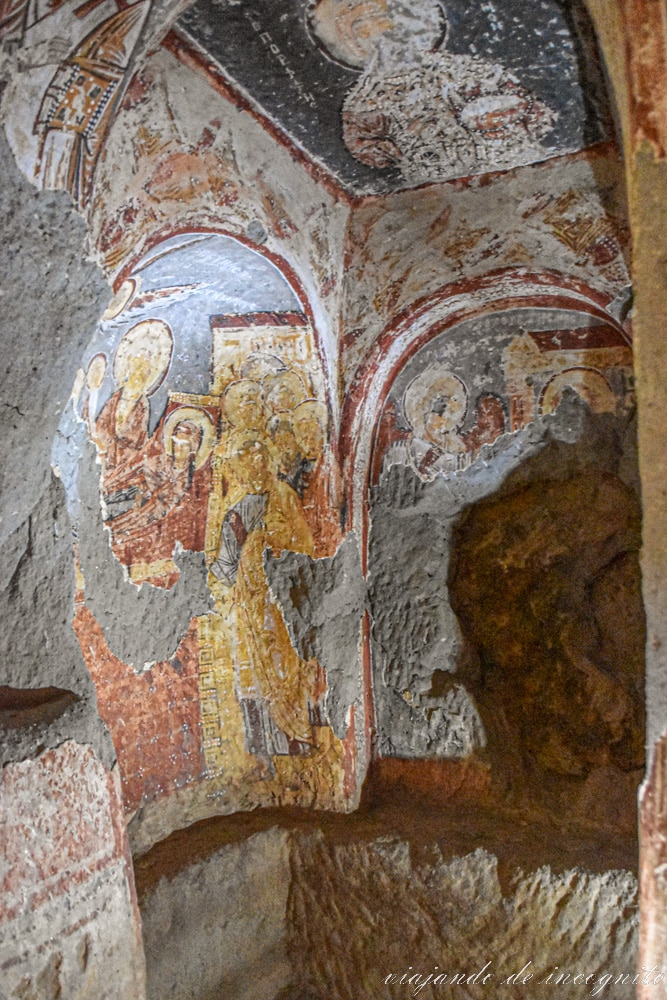 De camino a la taquilla pasamos por la iglesia Tokali, una iglesia rupestre con unos frescos preciosos. De hecho, fue una de las que más nos gustó.