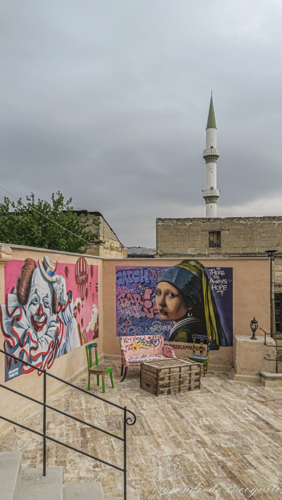 Tras la visita, fuimos a un mirador que hay junto al castillo. Además, por esta zona vimos varios hoteles con unas terrazas increíbles y pensamos que no estaría mal alojarse allí. Asimismo, descubrimos un par de rincones curiosos. Sin embargo, nos quedamos con la sensación de que Ortahisar nos gustaba más como pueblo, aunque en este había más cafeterías y restaurantes, algunos con vistas y localizaciones espectaculares. De hecho, Uchisar es una de las mejores zonas donde alojarse en Capadocia.