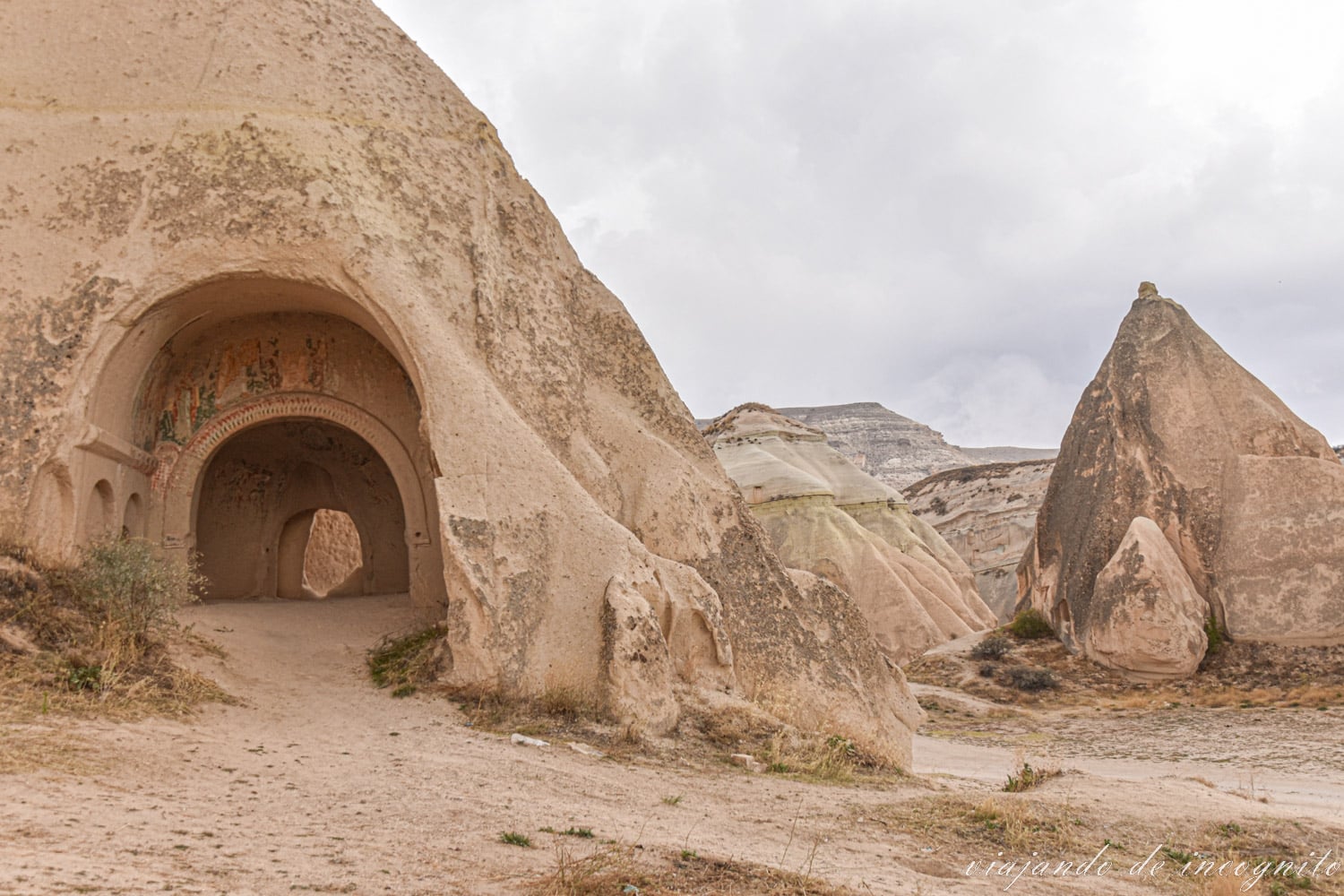 Por cierto, si quieres entrar en la iglesia Oscura, que es la mejor del complejo junto con la iglesia Tokali, tendrás que pagar una entrada extra. Si merece la pena o no, dependerá de tus intereses. Así, a nosotros nos encantó, pero no podemos enseñartela porque no se pueden hacer fotos en su interior.