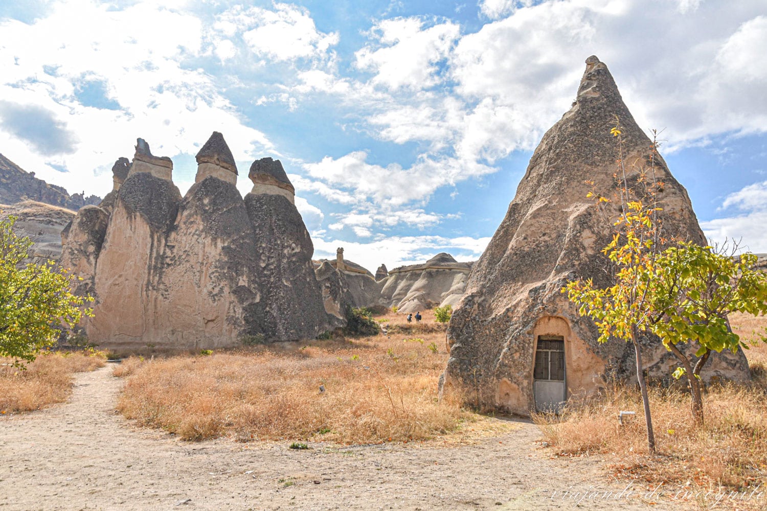 Este valle es perfecto para ver las chimeneas de hadas, esas formaciones que tienen un «sombrerito» encima hecho de una piedra más dura que protege a la parte inferior de la erosión. Pues bien, aquí hay, incluso, una comisaria en el interior de una de estas formaciones.