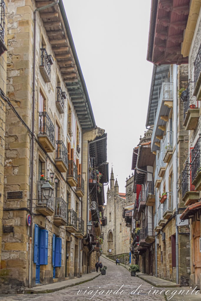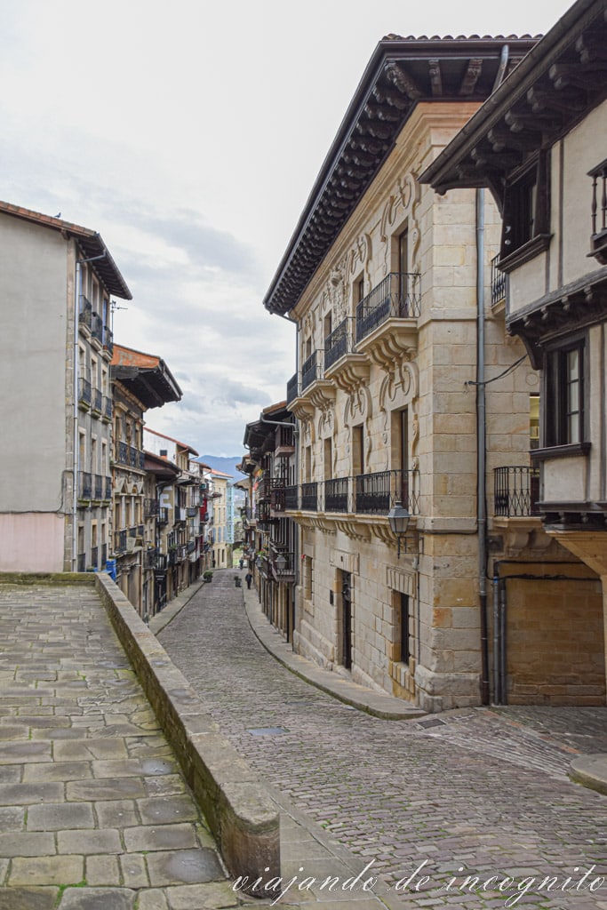 Si entras por la puerta de Santa María, te encontrarás de frente con la empinada Nagusi kalea o calle Mayor, que te llevará a lo más alto de la ciudad, la plaza de Armas.