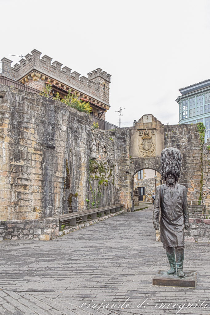Así, su elemento más característico es la puerta de Santa María, que es una de las dos puertas de la muralla. Esta se encuentra al sur del casco histórico y está decorada con el escudo de la villa y con una imagen de la Virgen de Guadalupe. Además, se encuentra protegida por el Cubo de Santa María del s. XVI y, desde 2011, por la estatua de un hatxero, que representa a un zapador y es una de las figuras representativas del Alarde.