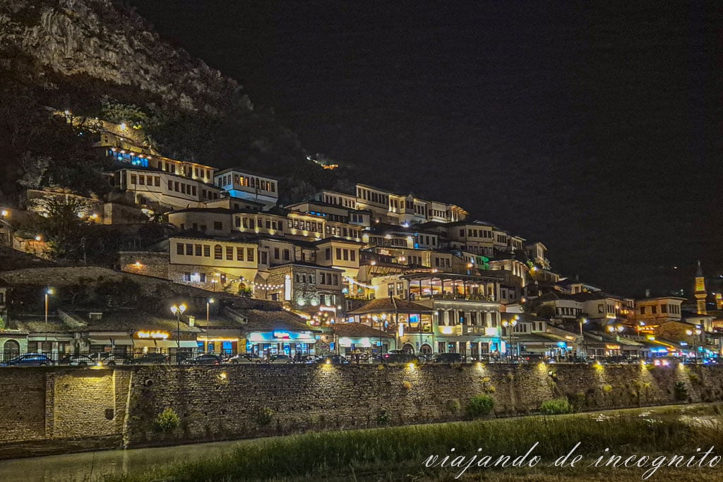 Una de las imágenes más famosas que ver en Berat es el conjunto de casas blancas que forma el barrio de Mangalem y que se disponen una sobre otra a lo largo de la ladera de la montaña. Viéndola, entiendes porqué Berat es conocida como la ciudad de las mil ventanas o la ciudad de una ventana sobre otra.