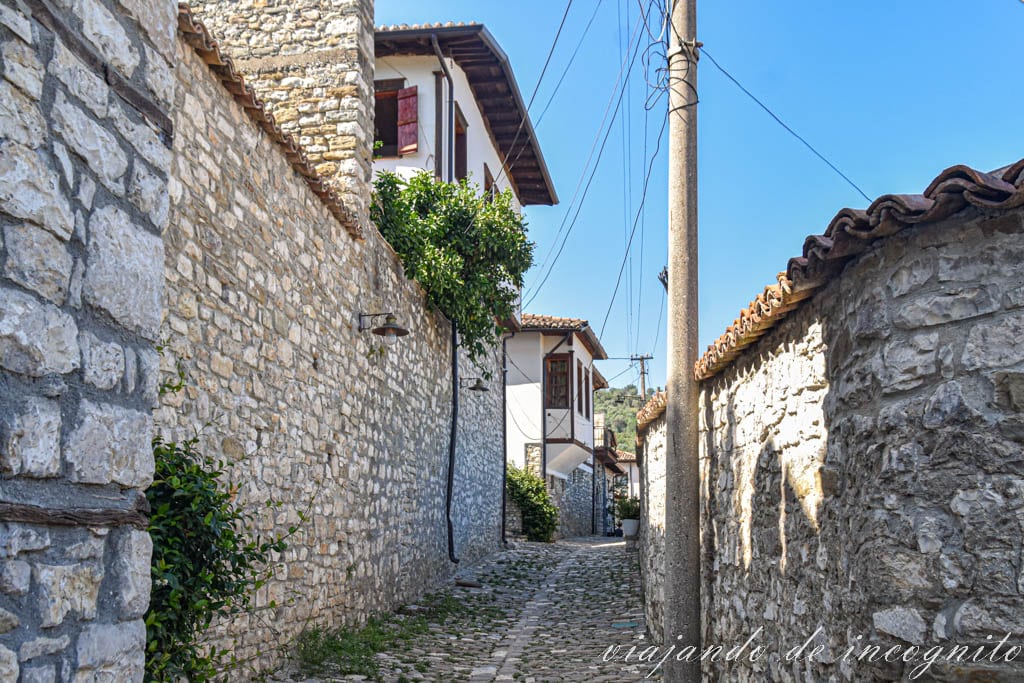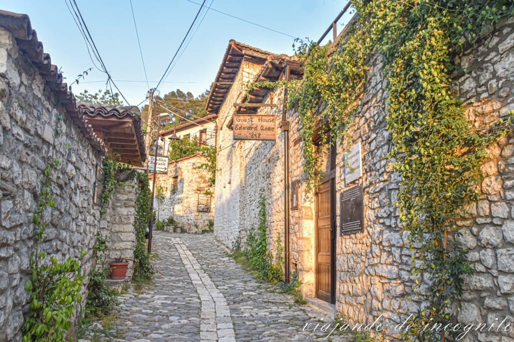 Frente al barrio de Mangalem, a la orilla izquierda del río Osum, se encuentra el barrio de Gorica, donde también merece la pena que pasees por sus pocas calles empedradas llenas de casas tradicionales. Es más, a nosotros nos gustó más que el de Mangalem, porque era todavía más tranquilo y coincidimos con la luz anterior al atardecer iluminando las fachadas de las casas de piedra otomanas.
