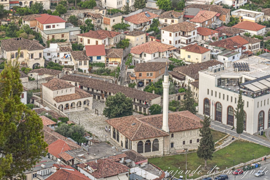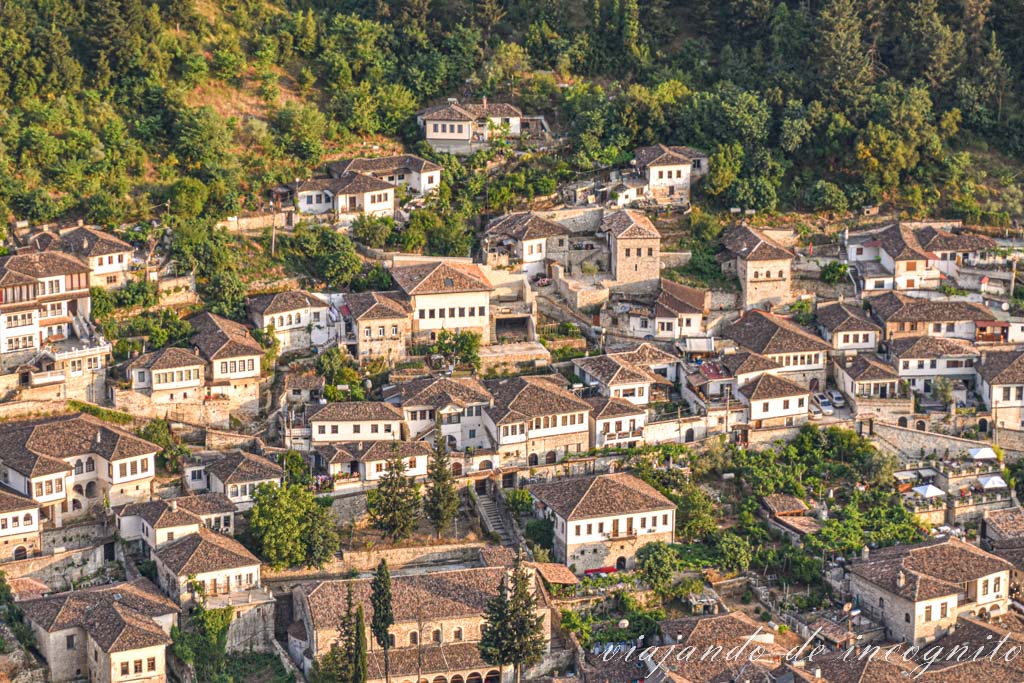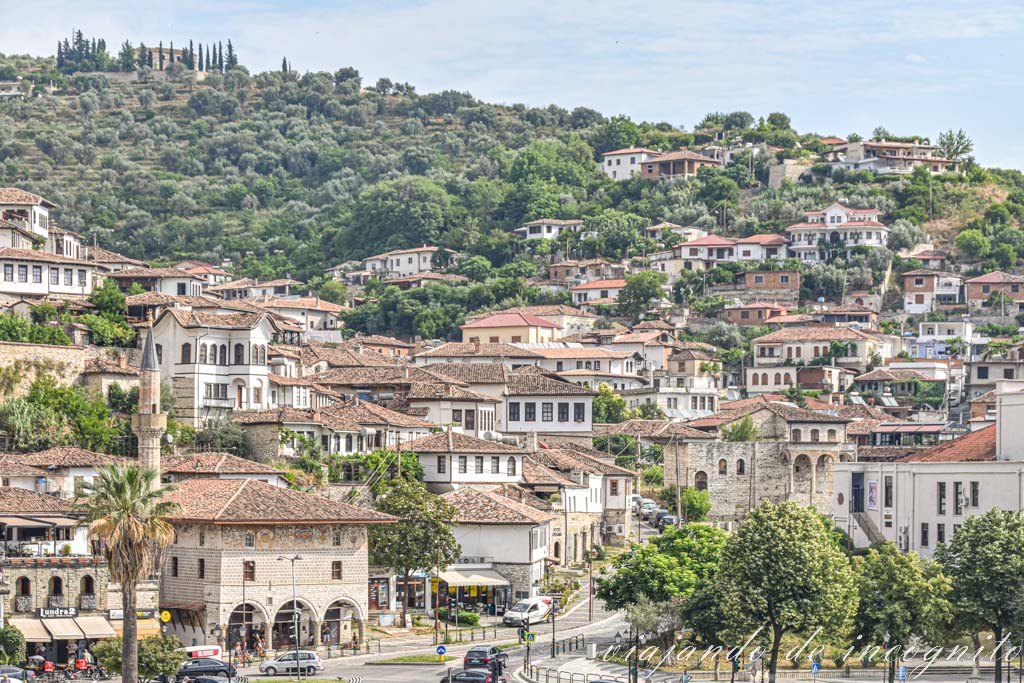 – Mangalem, el barrio a los pies del castillo, cuyas casas blancas se desparraman por la ladera de la montaña y acaba juntándose con el actual centro de Berat. Este se corresponde a la imagen más característica de la ciudad.