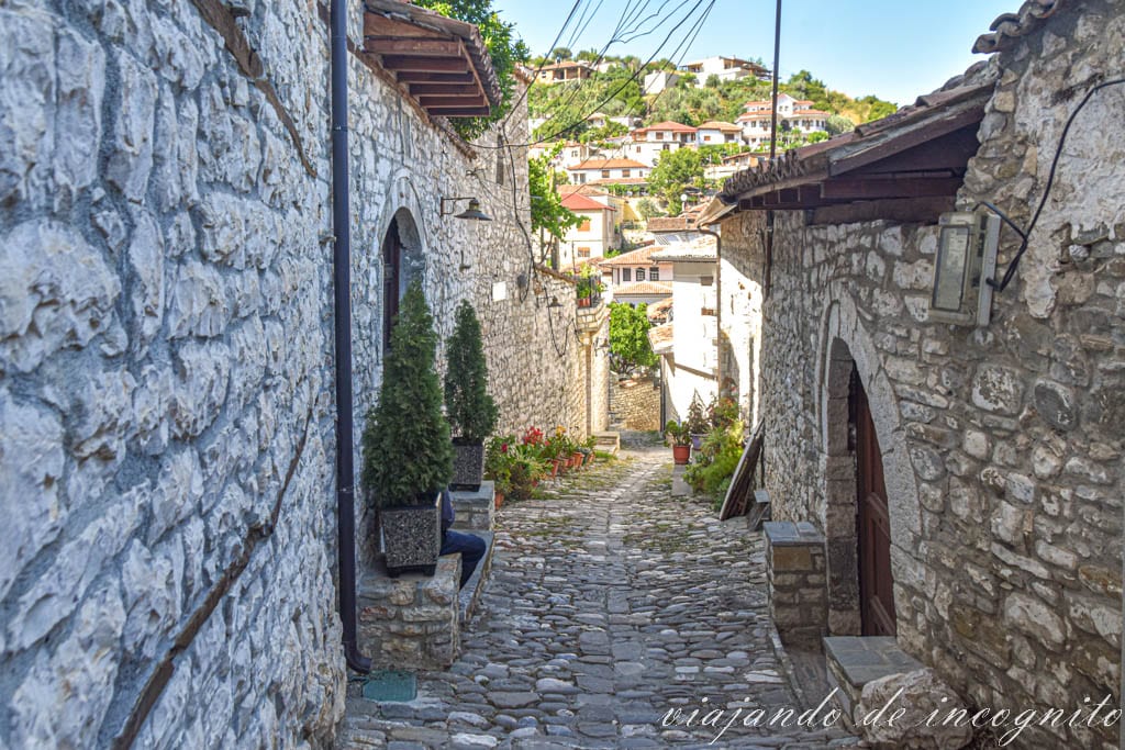 Perderse por sus callejuelas es muy fácil, ya que no hay muchas indicaciones, por lo que acabas dando vueltas y encontrando, casi al azar, sus distintos lugares de interés. Además, al ser una de las zonas que ver en Berat más visitadas, vas a encontrarte con varios puestos callejeros de productos hechos a mano y souvenirs, sobre todo junto a su entrada principal.
