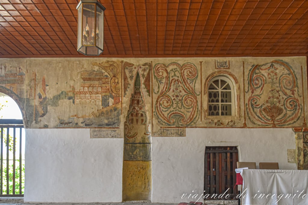 Aunque nos encontramos la Tekke cerrada, pudimos ver su interior por una de las ventanas. En él destaca el techo de madera decorado de la sala de oración. Como curiosidad, 5 columnas de esta tekke provienen de la antigua ciudad de Apolonia.
