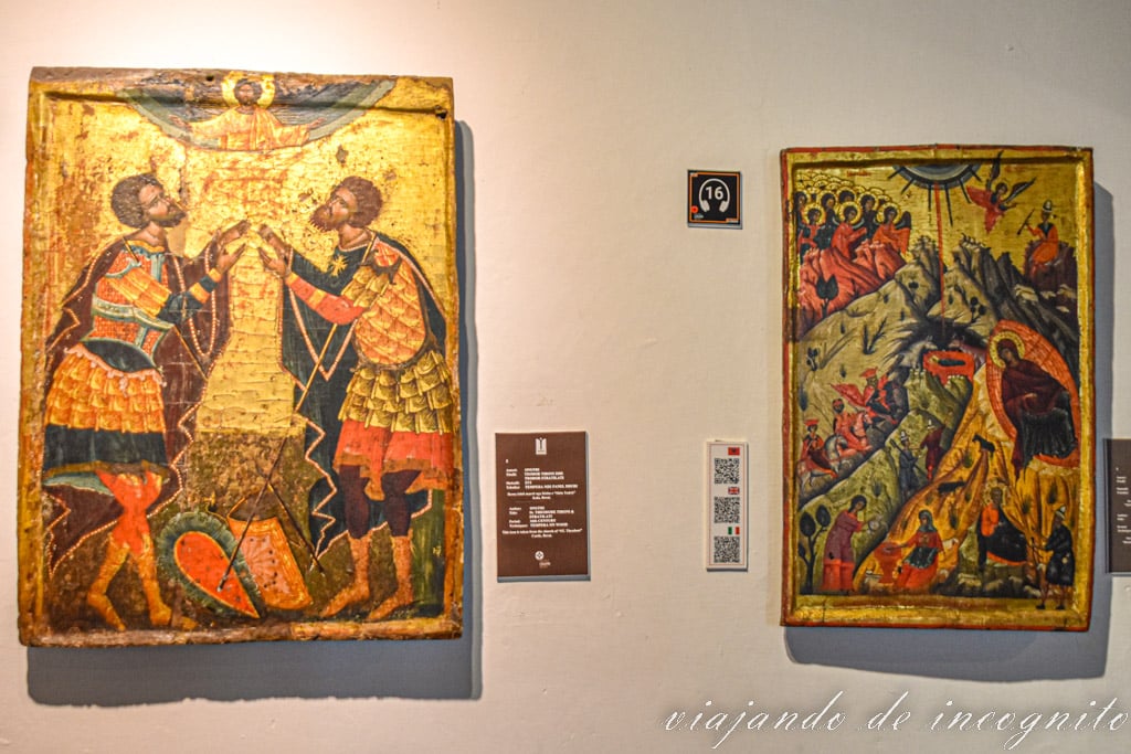 Pues bien, hay un pequeño museo en el castillo de Berat que lleva su nombre y alberga numerosos iconos, varios de Onufri y otros artistas importantes. Además, visitarlo te permite ver el interior de la iglesia que lo alberga, que se levantó a finales del S. XVIII sobre un antiguo lugar de culto y donde hay un bonito iconostasio y un púlpito interesante.