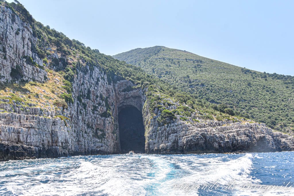 Por otro lado, alguna de las bahías más conocidas son la del Inglés, que tiene una entrada espectacular, Dafina y la de Grama, a la que nosotros fuimos en un viaje en barco desde Himare. Esta recibe su nombre por las inscripciones antiguas que hay grabadas en las paredes del acantilado, ya que Grama viene de letra en griego. Y es que aquí fondearon numerosos barcos en la Antigüedad.