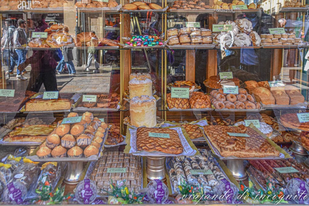 – La opción más económica es comprar un trozo de hornazo, empanada o algún bocadillo de embutido, en alguna tienda de la calle de la Rúa.