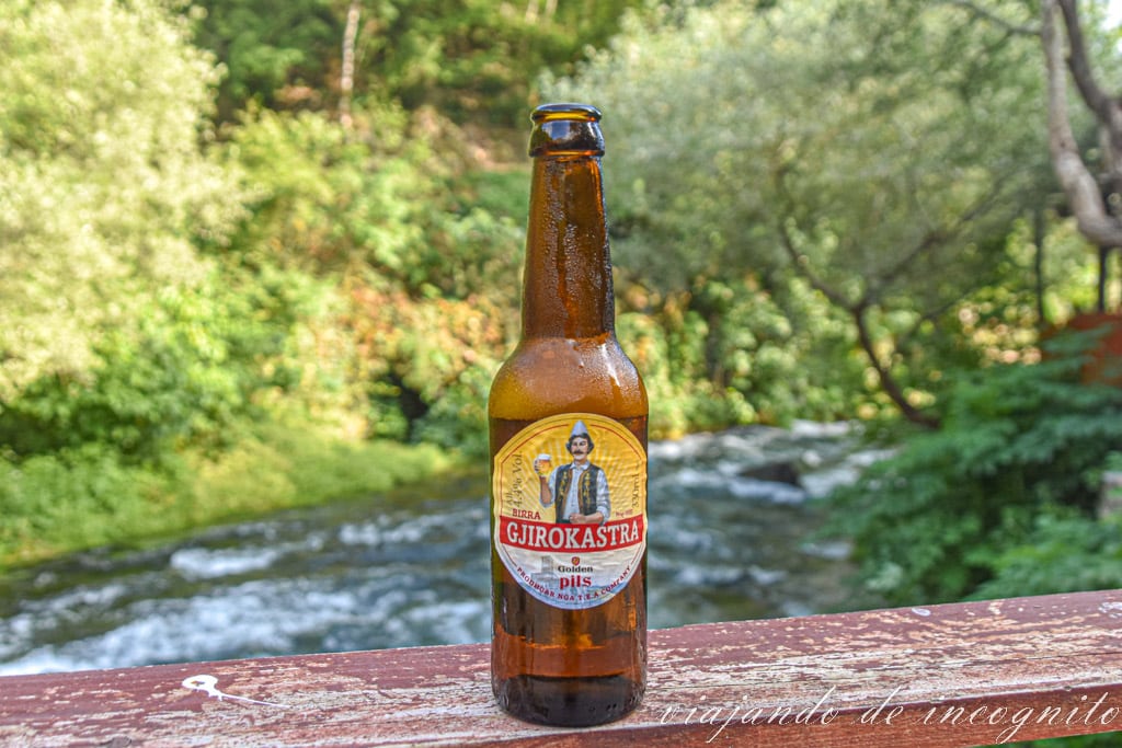 Sin embargo, nosotros no volvimos enseguida, sino que caminamos unos 3 minutos más hasta llegar a un restaurante que está junto al río para tomarnos una cerveza Gjirokaster bien fresquita. Y es que ese día hacía mucho calor.