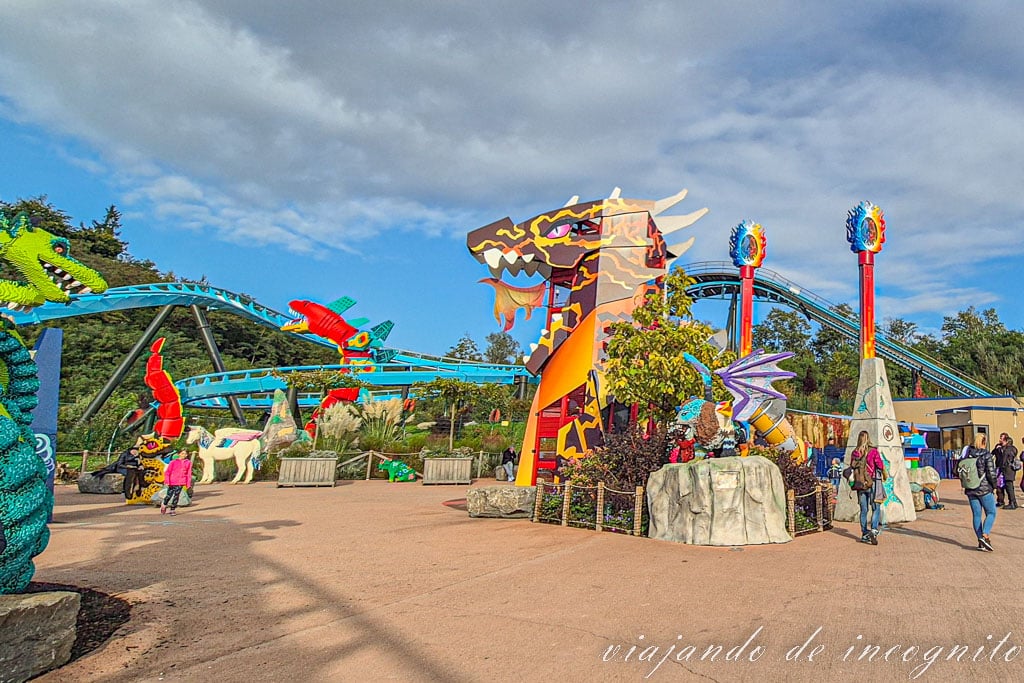 Junto a Lego City está el área de los caballeros, donde hay varias atracciones muy divertidas, incluyendo una de las mejores montañas rusas del parque, el dragón de fuego, que está dentro de un castillo bastante impresionante.