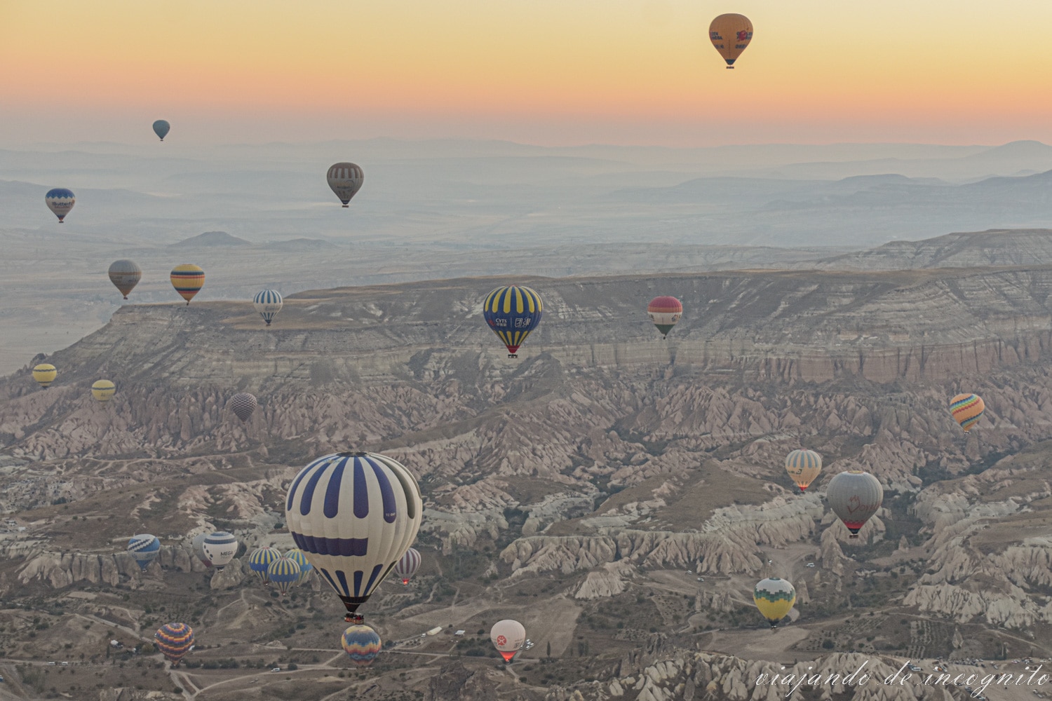Asimismo, gracias a la meteorología, se puede volar en globo en Capadocia durante todo el año. De hecho, se estima que salen unos 250 días al año, ocurriendo la mayoría de las cancelaciones entre diciembre y marzo, aunque puede pasar también fuera de estos meses, a nosotros, por ejemplo, nos ocurrió en octubre.